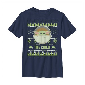 Boy's Star Wars The Mandalorian Ugly Christmas The Child Frog T-Shirt - 1 of 3