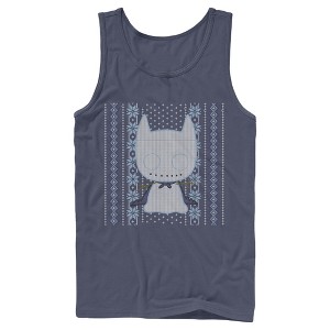 Men's Batman Ugly Christmas Chibi Snow Bat Tank Top - Navy Blue - Large