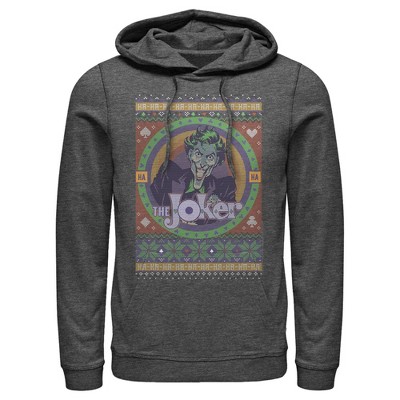 Men's Batman Ugly Christmas Chibi Joker Pull Over Hoodie - Charcoal Heather - Medium