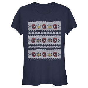 Juniors Womens Marvel Ugly Christmas Deadpool Taco T-Shirt - Navy Blue - Medium