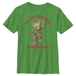 Boy's Marvel Christmas Groot Galaxy Greetings Brother T-Shirt - 1 of 3