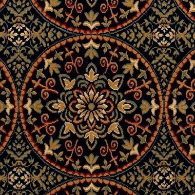 • A: Hi, The Medallion Area rug features a circular floral design in lively colors that form a fantastic symmetric layout sitting over a rich, black color foundation.
