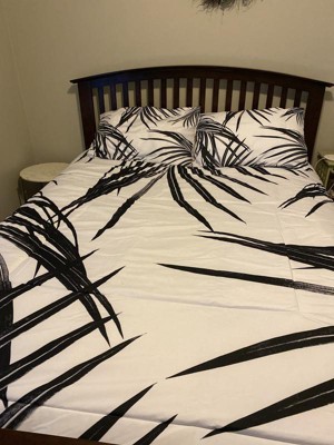 Twin Anita & Bella Art Palm Leaves Dream Comforter Set White/Black - Deny Designs: Microfiber, Reversible, 300 Thread Count