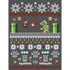 Time to deck the halls and the Mushroom Kingdom with the Nintendo Mario and Bowser Ugly Christmas Sweater Heather Charcoal T-Shirt! A Christmas sweater style print on the front of this cool gray Nintendo Christmas shirt features Mario, Bowser, mushrooms, snowflakes, and more.