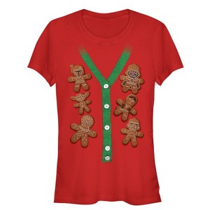Juniors Womens Star Wars Christmas Cookies Cardigan Print T-Shirt - 1 of 3