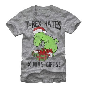 Men's Lost Gods Christmas T-Rex Hates Gifts T-Shirt - 1 of 4