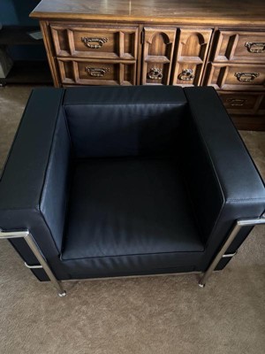 [This review was collected as part of a promotion.] Comfortable!! I am a big guy, and this chair has the room for me. Not to mention already assembled, sure to please every buyer. This fits prtfect in our den. I really apprec5the tight construction, and the wipeable durable material, the crome blends with any decor as well. I really enjoy this piece.