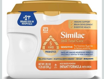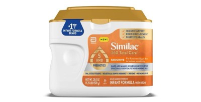 Similac 360 Total Care Sensitive Non-GMO Powder Infant Formula - 20.1oz: Unflavored, Kosher, Halal, Gluten-Free