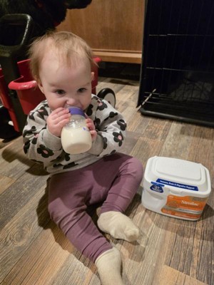 [This review was collected as part of a promotion.] She likes the formula So thats the number one thing, will she drink it lol But otherwise, my girl is supplement fed with this and is a mostly breastfed babe, so finding a formula she wont be picky with is a win Its nice this has vitamins most babies need before they start really getting food into their diet This container is also so nice, snaps shut and holds the scoop in the lid to avoid digging for a scoop.