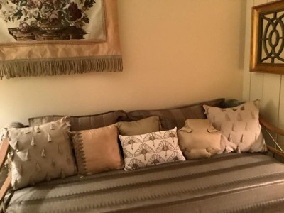 This is a beautifully made pillow with all of the bead work. I let the inter sealed packed pillow fill out before I put it in the insert. It is nice & full. I purchased this pillow to go in a different room, but liked it best in my den…as you can see in the picture I posted. Also, I turned the pillow upside down to make the bead work look more like a fan, instead of a bird as it is supposed to be turned. I ordered it in the off white, lucky it was the color I wanted as all of the others are out of stock at the moment. The price is unbelievable for this gorgeous pillow!