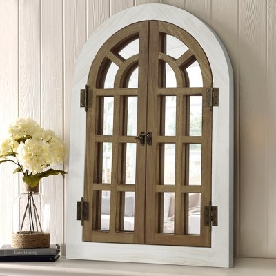 Wood Window Panes Inspired Wall Mirror with Arched Top and Distressing Gray - Olivia & May