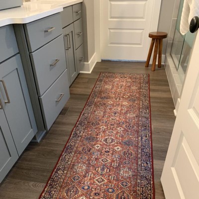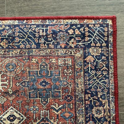 This is a beautiful rug and it’s very soft to the touch. However, the colors are a lot more vivid than I expected. The rust color is very orangey and the navy blue is very bright, too. It doesn’t really jive with my other decor. So, I gave them to my daughter and I’m searching for new rugs.