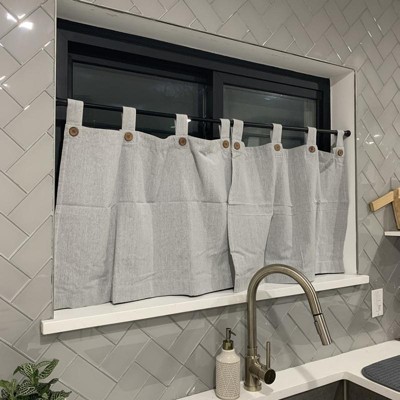 Stylish and versatile, the Tucker Tiers offer everything you need to create the shabby chic, modern farmhouse home. These fashionable kitchen tiers are made from premium quality cotton with tab tops and decorative wooden button embellishment. Kitchen curtains are offered in two sizes and offer the perfect amount of privacy and style for the kitchen or any small window, while still allowing natural light to shine through. Soft cotton can be easily ironed to release stubborn creases and make your window tiers wrinkle free. Delicately hemmed edge adds a finished look and prevents wear and tear. Sold as a set of two window tiers measuring 30 inches wide by choice of 24 or 36 inches long. 3 inch tab tops are recommended with up to a 1 inch rod for maximum movement and are included in provided length measurement. Coordinate to Tucker valance, sold separately. 100% Cotton. Machine washable.