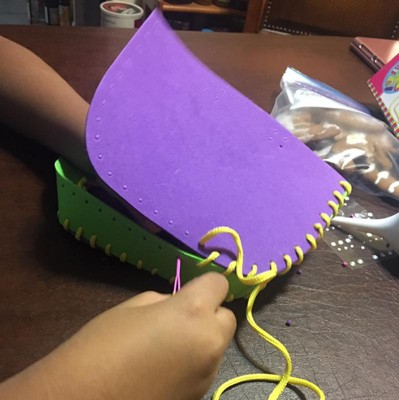 My son immediately put together items. He is eight years old and enjoys learning to sew. I wish they had more of a variety for boys—as far as color options. Great first sewing kit. Needles and string are larger, so that little people are able to handle the materials better.