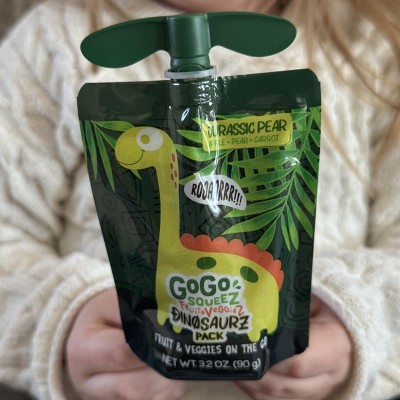 GoGo SqueeZ Fruit & VeggieZ No Sugar Added Applesauce and Puree Dino Jurassic Pear Roarrr Berry & Prehistoric Peach Variety Pack - 3.2oz/20ct