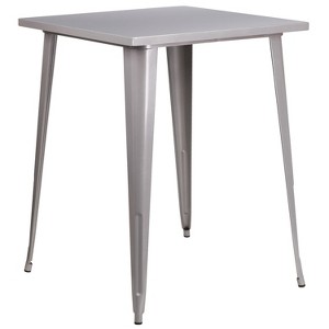 Emma and Oliver Commercial Grade 31.5" Square Silver Metal Indoor-Outdoor Bar Height Table