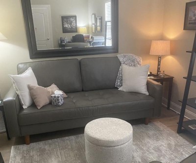I bought this ottoman for my entryway, which is a bit of a narrow hallway. I wanted something where people could sit to take off their shoes and vice versa. A regular bench would not have worked as it would be too big for that space. So I purchased this ottoman which is pretty sturdy and stylish, and inside has a sizeable unassuming area for storage despite its petite look. I was pleasantly surprised and amazed at how much you can store in such a small round item. I recommend this product to anyone looking for a bench who does not have ample room. Also, I bought the beige and light gray ottoman because the color is so subtle I can use this piece universally around my house.