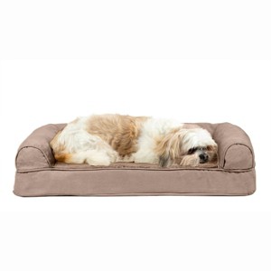 I bought the sofa style dog bed in plush & suede 2 years ago, and my elderly dog still uses it everyday. The bolsters on the sides & back give her support to curl up against, or to stretch out and lay her head on top of. The memory foam is worth the extra $ because it doesn't sag, go flat, or get lumpy. I wish I had found these beds sooner to support my old girl.