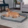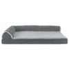 Pamper your pet with a Furhaven Deluxe Cooling Gel Memory Foam Orthopedic Two-Tone Plush Faux Fur & Suede L Shaped Chaise Lounge Sofa-Style Living Room Corner Couch Pet Dog Bed! A luxuriously soft faux fur sleep surface is complemented by suedine bolsters and gusset. Ultra plush, flecked faux fur provides a snuggly soft sleep surface and trims the edges of the bolster for a chic flair. The two-tone design hides dirt and pet dander better than traditional plush sleep surfaces. The L-shaped bolsters support your pet’s back and hips, providing additional support. The L-shape also provides the perfect nook for pets that like to nest into comfort. The two raised, rounded bolster ends allow your pet to lay their paws or neck on the pillowed edge, helping to align the neck and spine. The medical-grade foam core includes a layered orthopedic foam core topped with gel-infused memory foam. Micro gel beads help keep the bed cooler while memory foam conforms to your pet's shape providing superior support of joints and pressure points. Gel foam has cooling properties reducing the sleeping surface by 1 or 2 degrees, wicking heat away from your pet. The superior support provided by both foam cores will help your pet reach a deeper, more restorative rest for your pet's health. Available in various stylish colors and diverse sizing options so your pet can sprawl and lounge the day in maximum comfort and style.