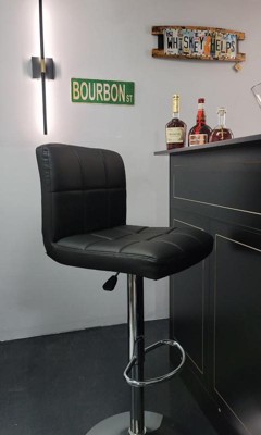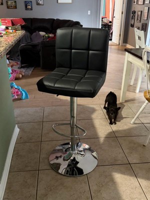 [This review was collected as part of a promotion.] I don’t have a bar, so I use this stool at my dining table and it works great. The adjustable height makes it easy to get the right fit, and the quilted seat is very comfortable. The vinyl is easy to wipe clean, which I appreciate for daily use. It looks modern and feels sturdy.