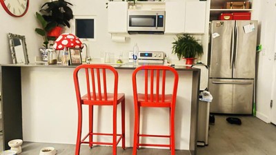 I love the orange chairs I purchased for a residential kitchen . Small scale chairs , comfortable and low maintenance Ml design