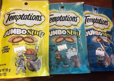 Temptations jumbo stuff tasty chicken treats are a good value for those pawrents with multiple kitties in the house as there's usually enough to last multiple days.