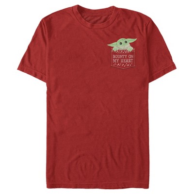 Women's Star Wars The Mandalorian The Child Bounty Heart Pocket T-Shirt - Red - Large