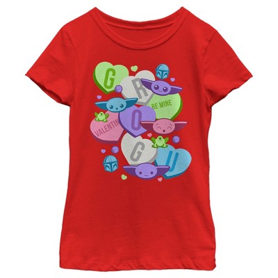 Girl's Star Wars The Mandalorian The Child TooCute Candy Hearts T-Shirt - Red - Medium