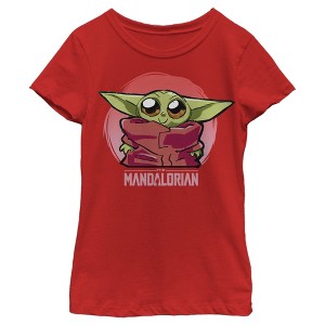 Girl's Star Wars The Mandalorian The Child Circle T-Shirt - Red - X Small