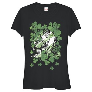 Juniors Womens Marvel St. Patrick's Day Hulk Clover Field T-Shirt - 1 of 3