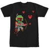 Take a break from bounty hunting to spread the love with the Star Wars Valentine's Day Boba Fett Cupid Black T-Shirt. A boxy pixelated Boba Fett flying with his jetpack and shooting arrows is printed on the front of this awesome Star Wars Valentine's Day shirt.