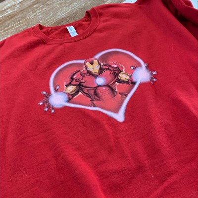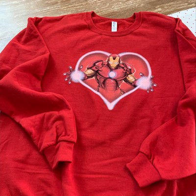 Men's Marvel Valentine's Day Iron Man Heart Frame Sweatshirt - Red - X Large