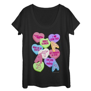 Women's Star Trek Valentine's Starfleet Candy Hearts Scoop Neck - 1 of 3