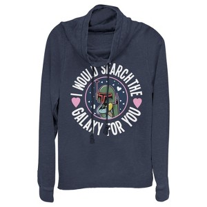 Juniors Womens Star Wars Valentine Boba Fett Search the Galaxy Cowl Neck Sweatshirt - 1 of 3