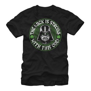 Make the Star Wars Luck is Strong Black T-Shirt your lucky charm and celebrate Saint Patrick's Day Sith-style! This awesome black shirt features Darth Vader's helmet with shamrocks and "The Luck is Strong With This One!" printed around it.