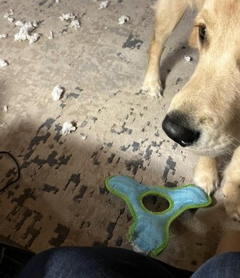 The dog toy brand seems to be the only toy that their dog hasn’t been able to destroy within days. She Loved the Orange Crab ( I’m giving her another one soon). Found the Aqua Triangle toy, I plan to give for Christmas.