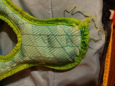 My dog loves DuraForce Triangle Ring Dog Toy. He flings it around and chews on it. He is an aggressive chewer and this toy has lasted. Edges are sewn well, material seems durable. This toy seems like it will hold up against his chewing.
