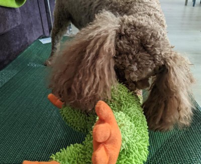 Now that I'm 2, I no longer tear apart my toys. This lizard is a favorite because it's soft and squeaky and perfect for fetch and tug with my owners. I think it lasted a month or so before I took its foot off.