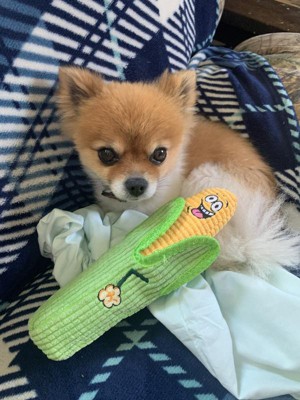 My dogs loved this corn. And it was cute that it came in two pieces that came apart. The only problem was that they ripped a big hole in it fairly quickly. But it’s probably because they like to play tug on the corn with each other. It was a fun toy while it lasted though.