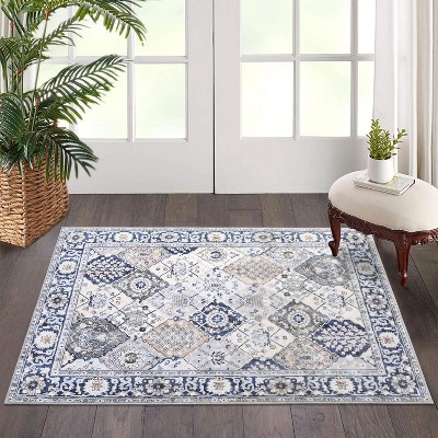 The floral and geometric pattern was quite pleasing for my foyer area. The colors complimented my wall colors quite nicely. The rug is constructed well making it resistant to snags. As a bonus, my puppy finds it to be quite comfortable. Overall, I am very pleased with the look it provides for my front entrance!