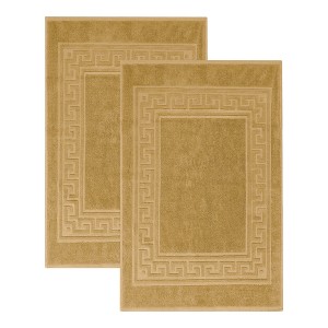 This is a very well made bath mat, thick and absorbent. I only needed one but for the price this was a really great deal. It perfectly matches the ' Canary Yellow' Superior bath towels that we also purchased here on Shopify. The Greek-looking design that goes around the borders of these bath mats gives them a regal look. They are a heavy weight bath mat and they look so much more expensive than most others we've had. They wash and dry well and no loose threads or any seams coming undone. We are VERY happy with this product but just wish the mats and towels came in more colors, please!