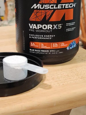 [This review was collected as part of a promotion.] First of all I accepted to sample MuscleTech VaporX5 Preworkout because I was looking for a preworkout supplement that would help me push my limits during my workouts. I had heard good things about this product, and I was curious to see if it would live up to the hype. My personal experience with VaporX5 was quite positive. The product delivered on its promises and helped me get through some intense workouts. The taste (Blue Razz Freeze) was also quite good, with a nice blue raspberry flavor that was not too sweet or artificial. The product mixed well with water and did not leave any clumps, which was a plus. I also appreciated that the product did not give me any jitters or crash after my workouts, which can be a problem with some preworkout supplements. VaporX5 helped me to stay focused and energized throughout my workouts. I felt an increase in strength and endurance, which allowed me to push harder and get more out of my workouts. The product also helped me to maintain my focus and concentration, which can be difficult during long and intense training sessions. Overall, I would highly recommend MuscleTech VaporX5 Preworkout to anyone who is looking for a pre-workout supplement that delivers on its promises. The product provided me with a noticeable increase in energy, focus, and endurance, which allowed me to take my workouts to the next level.