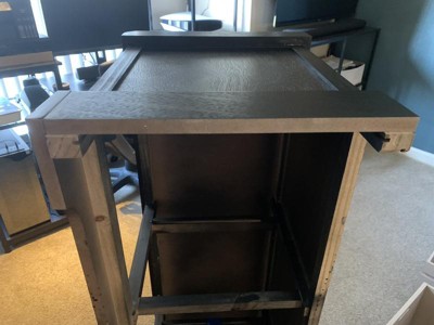 Cheaply made, item was dirty and drawer tracks broken, no protection on area in contact with floor just bare jagged wood.