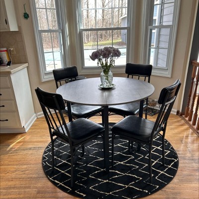 I purchased this area rug along with black sheer curtains from Amazon for my dining area. Everything blended together perfectly. I love it!