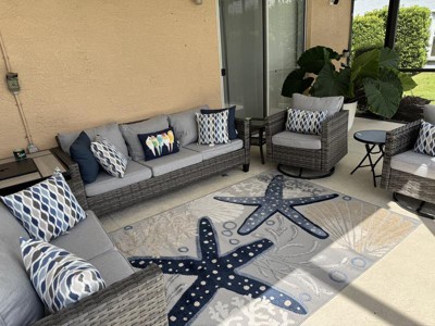 This rug complements my patio furniture. Nice quality.