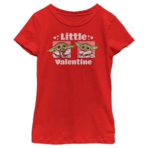 Girl's Star Wars The Mandalorian Valentine's Day The Child Little Valentine Panels T-Shirt - Red - Small