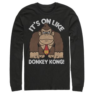 Get your game on with the Nintendo Donkey Kong Fist Pump Men's Long Sleeve! everyone's favorite gorilla, is printed on the front of this cool long sleeve, with the phrase "It's on like Donkey Kong!" printed around him.