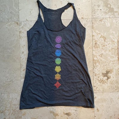 Women's CHIN UP Rainbow Chakra Racerback Tank Top - Black Heather - X Small