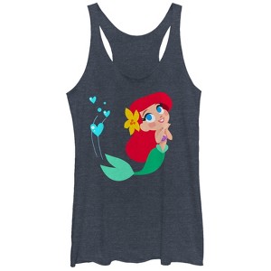 Women's The Little Mermaid Ariel Love Racerback Tank Top - Navy Blue Heather - X Large