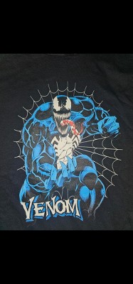 Don't be fooled by his sharp teeth and drool! Venom is actually very happy to see you on the Marvel Venom Retro Web Boys' T-Shirt. A retro style Venom is featured in blue with a web behind him on this cool Marvel shirt.